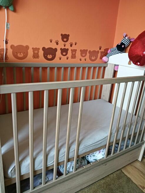 Sprzedam. Drewniane łóżeczko dziecięce z szufladą na pościel + komoda Idealne dla małego ...