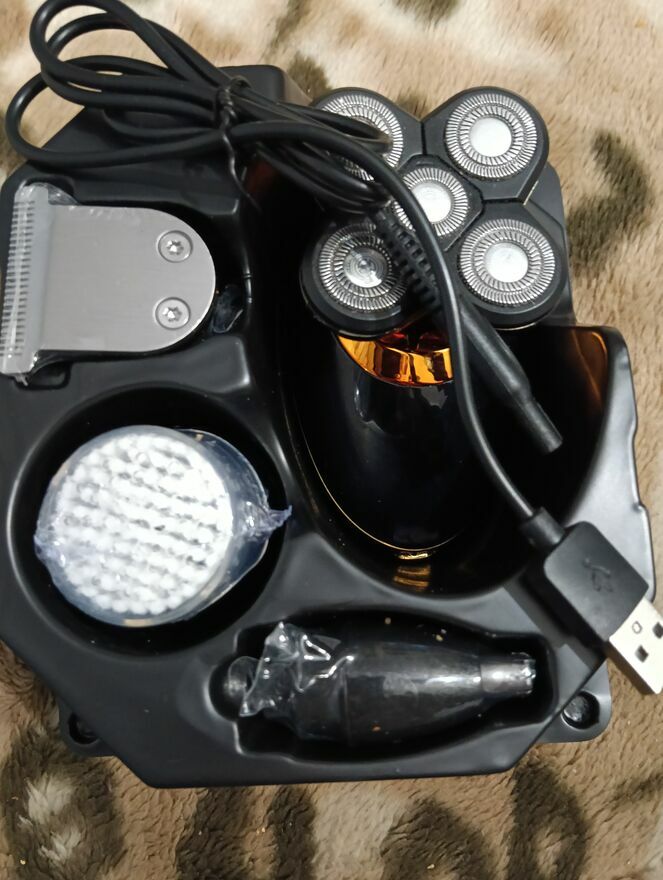 W zestawie golarka do brody pięcioma obrotowymi ostrzami